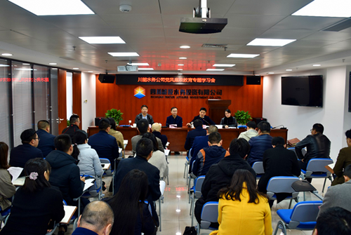 11月26日,川能水務(wù)公司召開黨風(fēng)廉潔教育專題學(xué)習(xí)會。會議邀請四川省紀(jì)委監(jiān)委駐省能投集團紀(jì)檢監(jiān)察組辦公室副主任、能投集團紀(jì)委辦公室副主任陳義授課,公司黨支部書記講授黨風(fēng)廉潔專題黨課。學(xué)習(xí)會由公司黨支部副書記錢汝靜主持,黨支部委員、總經(jīng)理王亮及全體班子成員出席會議,公司本部及所屬公司黨員領(lǐng)導(dǎo)干部40余人參加會議。?