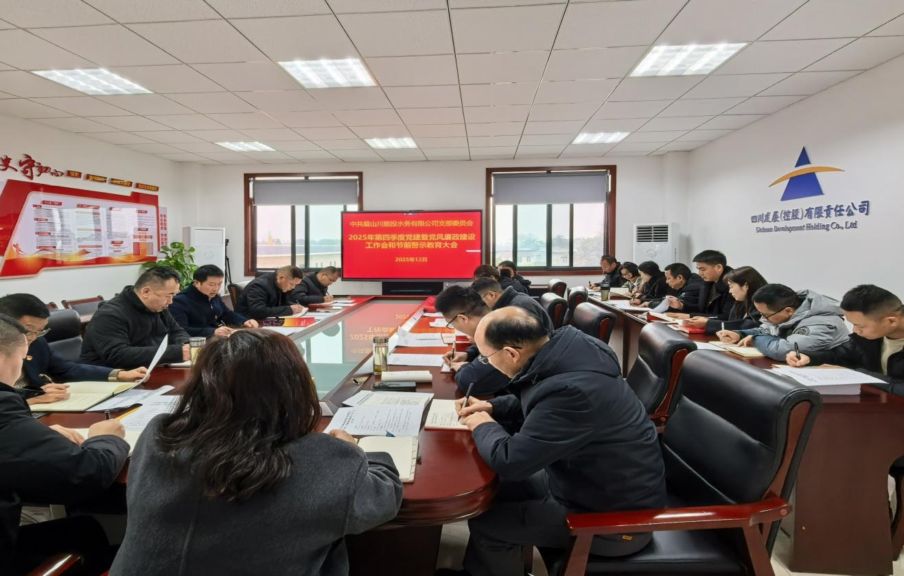元旦、春節(jié)雙節(jié)臨近之際,為深入學(xué)習(xí)貫徹習(xí)近平新時(shí)代中國(guó)特色社會(huì)主義思想,深入落實(shí)全面從嚴(yán)治黨戰(zhàn)略方針,推動(dòng)黨建與黨風(fēng)廉政建設(shè)深度融合,筑牢節(jié)日廉潔與安全雙重底線。近日,眉山川能投水務(wù)有限公司召開(kāi)第四季度黨建暨黨風(fēng)廉政建設(shè)工作會(huì)和“元旦·春節(jié)”節(jié)前警示教育大會(huì)。公司領(lǐng)導(dǎo)班子成員、中層管理人員及職工代表等30余人參加會(huì)議。