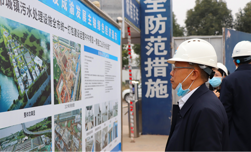 (圖為四川環(huán)保副總經(jīng)理(主持工作)陳實(shí)認(rèn)真觀看南強(qiáng)工業(yè)污水處理廠項(xiàng)目展板)