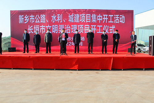 春風(fēng)和暢,生機(jī)盎然。2022年2月26日,河南省新鄉(xiāng)市公路、水利、城建項(xiàng)目集中開(kāi)工活動(dòng)分會(huì)場(chǎng)-文明渠治理項(xiàng)目開(kāi)工儀式在長(zhǎng)垣市生態(tài)水系項(xiàng)目現(xiàn)場(chǎng)舉行。長(zhǎng)垣市領(lǐng)導(dǎo),各部門(mén)、鄉(xiāng)鎮(zhèn),項(xiàng)目參建單位等出席此次開(kāi)工儀式。長(zhǎng)垣市委副書(shū)記、市長(zhǎng)鄧國(guó)永主持開(kāi)工儀式,長(zhǎng)垣市市委書(shū)記范文卿宣布文明渠治理項(xiàng)目開(kāi)工。