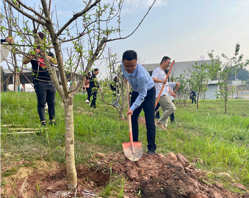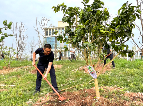 “樹苗要扶正,新土要踩實......”公司黨支部副書記、董事長朱曉鳴一邊鏟土種樹,一邊和身邊的黨員、干部職工分享植樹經(jīng)驗。