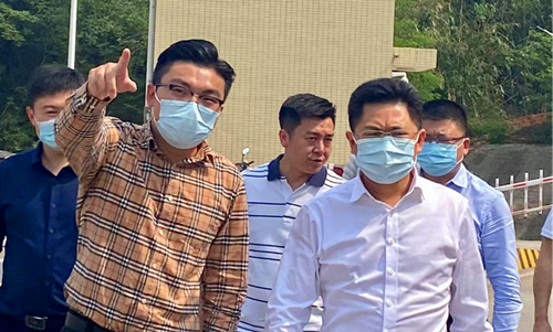 (圖為張韜現(xiàn)場(chǎng)聽(tīng)取南強(qiáng)工業(yè)污水處理廠相關(guān)工作情況匯報(bào))