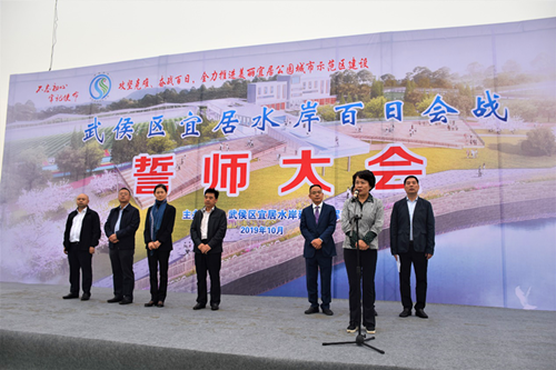 10月9日,成都市武侯區(qū)召開(kāi)了武侯區(qū)“宜居水岸”百日會(huì)戰(zhàn)啟動(dòng)儀式。武侯區(qū)區(qū)委副書(shū)記、區(qū)長(zhǎng)林麗,區(qū)委常委、區(qū)政府黨組成員潘永革,川能水務(wù)公司黨委書(shū)記、董事長(zhǎng)張忠武、川能宜居水岸公司董事長(zhǎng)、總經(jīng)理何濤出席儀式。儀式由潘永革主持。