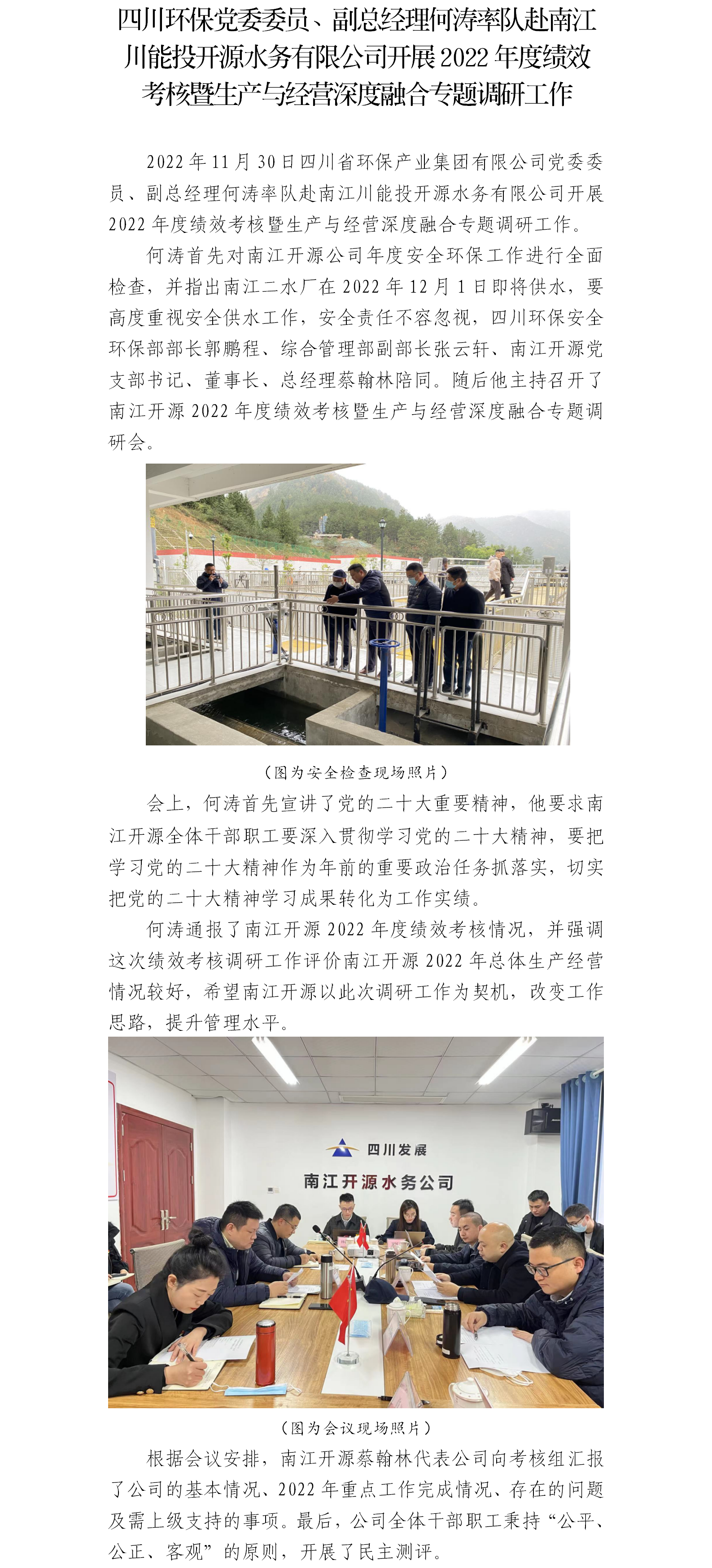 下一條:四川環(huán)保黨委副書記、職工董事、工會主席錢汝靜率隊赴宜居水岸開展2022年度績效考核暨生產(chǎn)與經(jīng)營深度融合專題調(diào)研