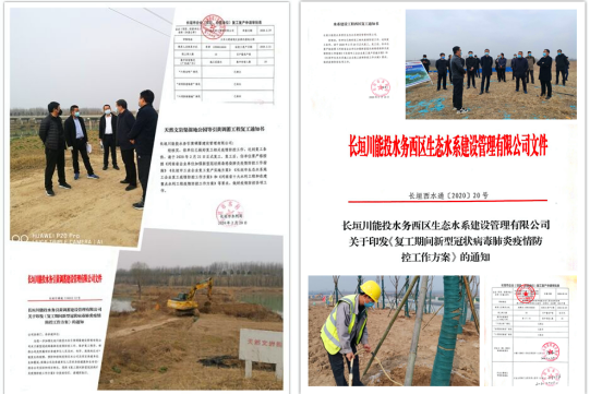 2020年2月10日以來,川能水務長垣公司按照長垣市委、市政府關于建設復工的指示文件及各項復工要求,對照生態(tài)水系項目和引黃調蓄項目的各自特點,認真梳理、研究、分析目前水系項目和引黃項目在復工準備、疫情防控、施工建設存在的問題和困難;針對問題和困難做到一事一議一辦法、一事一策一方案的工作管理思路,逐一制定解決辦法和落實措施;在項目建設復工過程中切實做到了防控和復工準備兩不誤的工作布局,為長垣市民生建設工程復工做出了標桿,并得到了長垣市委、市政府和市水利局相關領導的高度認可和表揚。