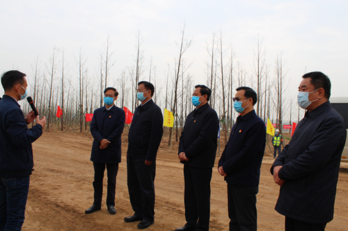 在王家潭智慧森林濕地公園建設(shè)現(xiàn)場,長垣市委書記秦保建向檢查督導(dǎo)組一行介紹了王家潭智慧森林濕地公園規(guī)劃與建設(shè)內(nèi)容、項目復(fù)工復(fù)產(chǎn)和疫情防控工作、積極配合市委、市政府充分利用春季開展造林綠化建設(shè)工作等。