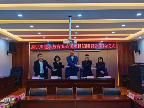 近日,遂寧川能水務(wù)有限公司分別與中國建設(shè)銀行遂寧分行、中國工商銀行成都東大支行、中國銀行遂寧分行、中國郵政儲蓄銀行遂寧分行舉行銀團(tuán)貸款簽約儀式。遂寧市住房和城鄉(xiāng)建設(shè)局、股東單位相關(guān)領(lǐng)導(dǎo)及銀行代表、遂寧公司主要負(fù)責(zé)人,共計(jì)24人參加了簽約儀式。